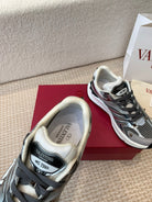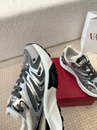 Valentino Sneaker 50mm In Black Mix Grey Blue Mesh Fabric And Cowhide 814272
