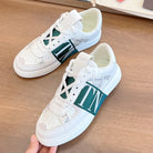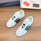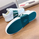 VL7N LOW-TOP WHITE CALFSKIN AND PINE GREEN FABRIC SNEAKER WITH BANDS