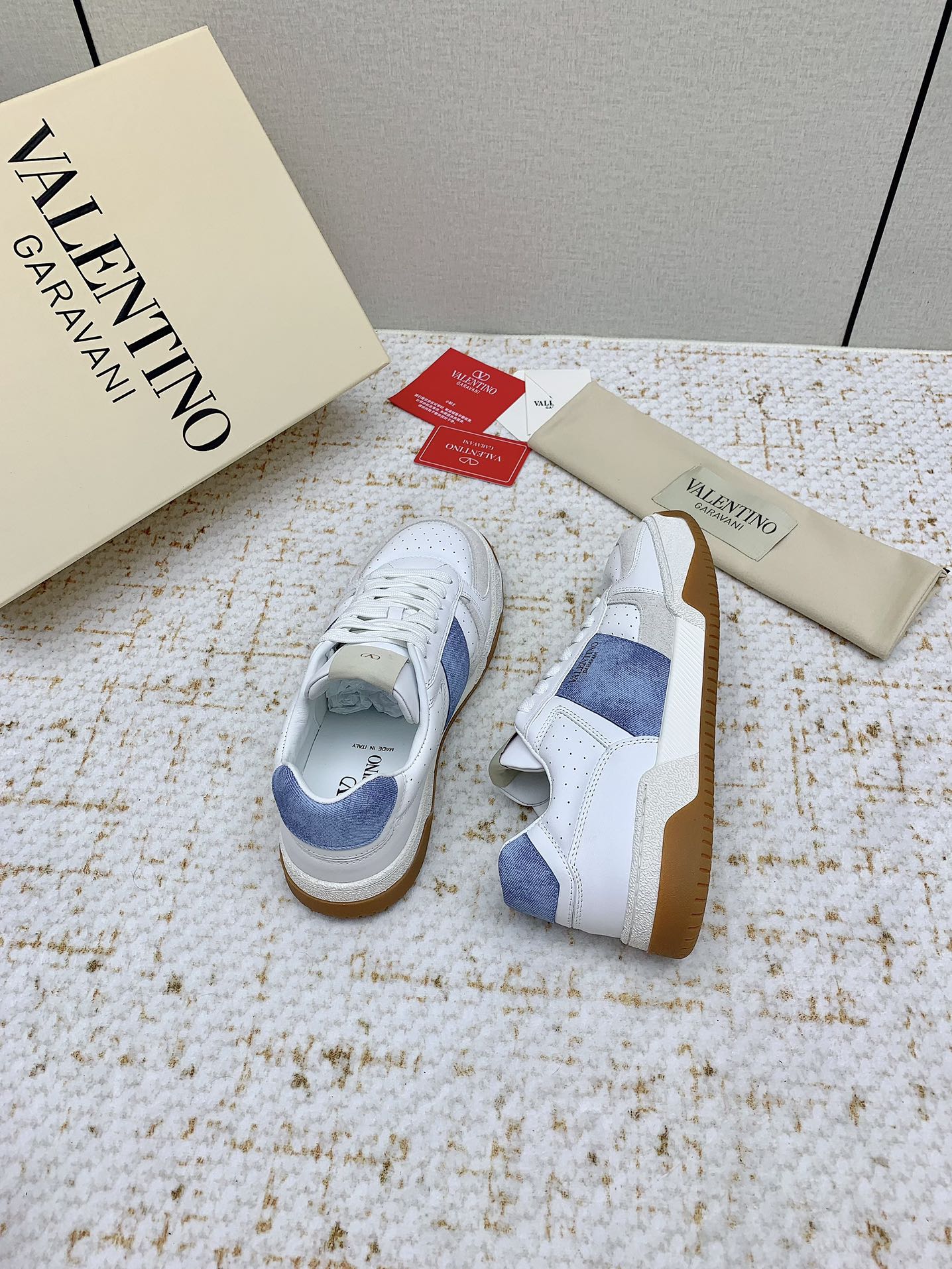 VT 25 Low Top Garavani Sneaker Denim White Cowhide