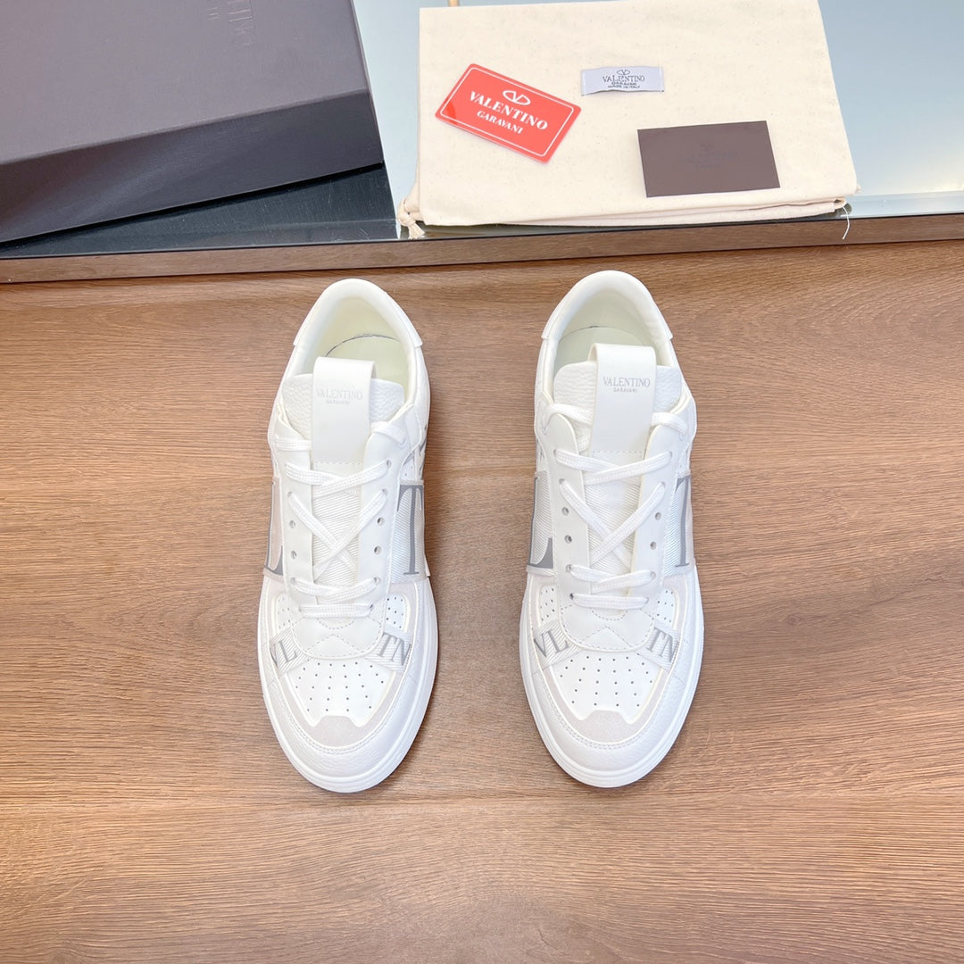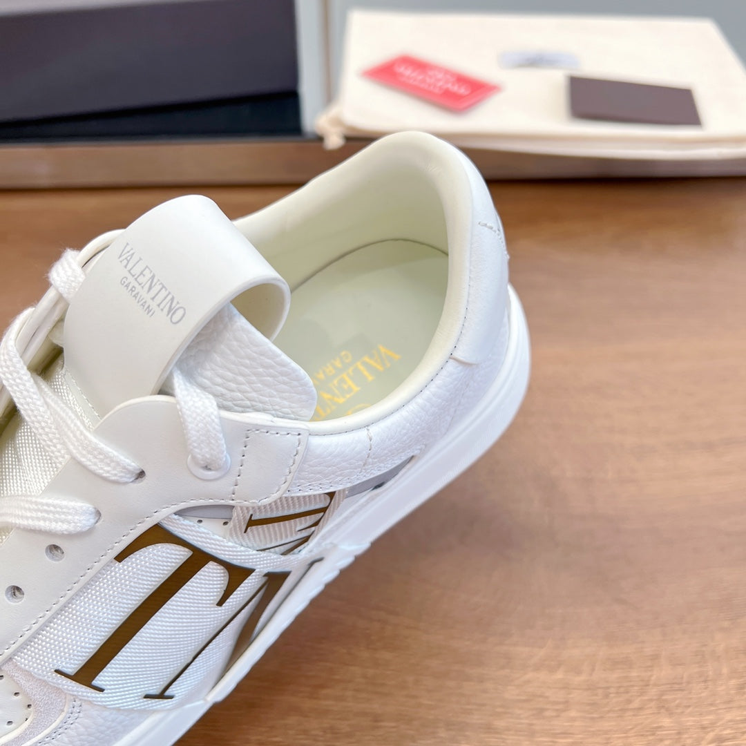 VL7N LOW-TOP WHITE CALFSKIN AND BLACK FABRIC SNEAKER WITH BANDS