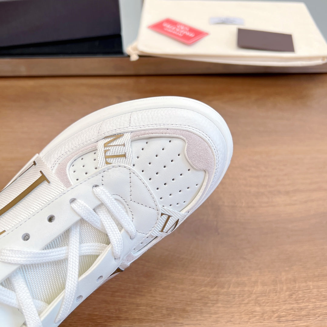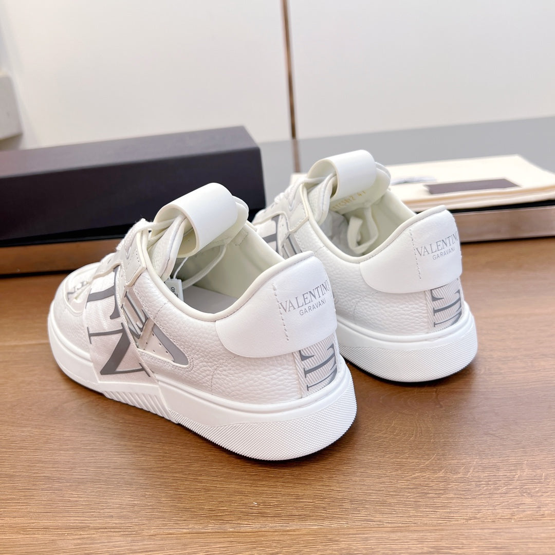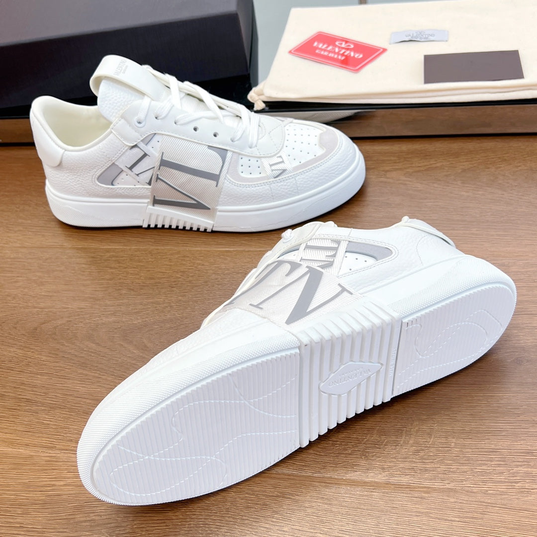 VL7N LOW-TOP WHITE CALFSKIN AND GREY FABRIC SNEAKER WITH BANDS