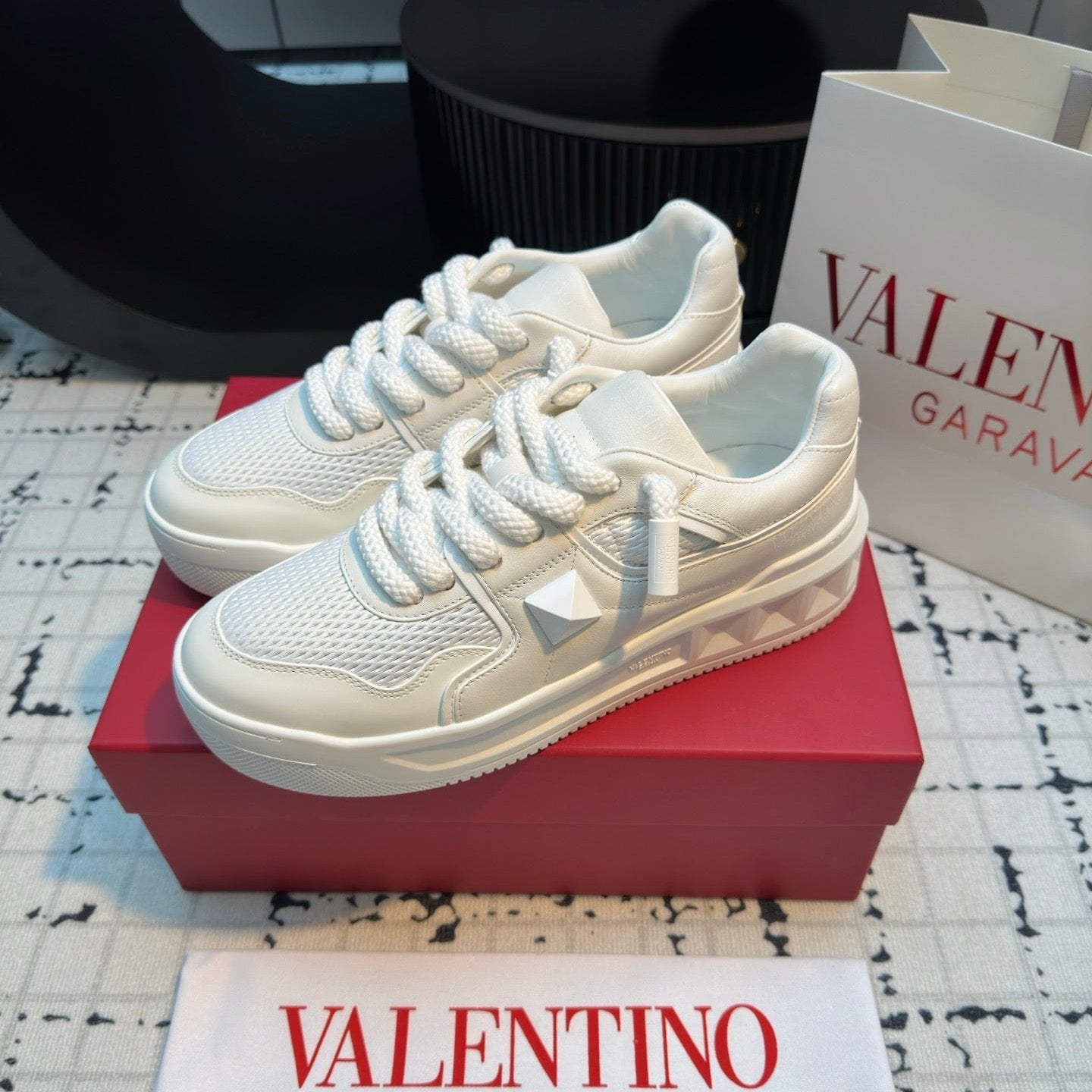Valentino Sneaker 50mm In Black Mix White Mesh Fabric And Cowhide 814280