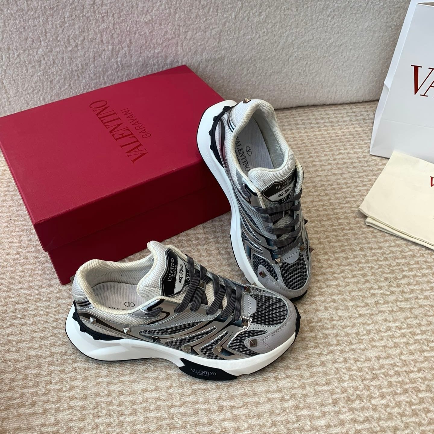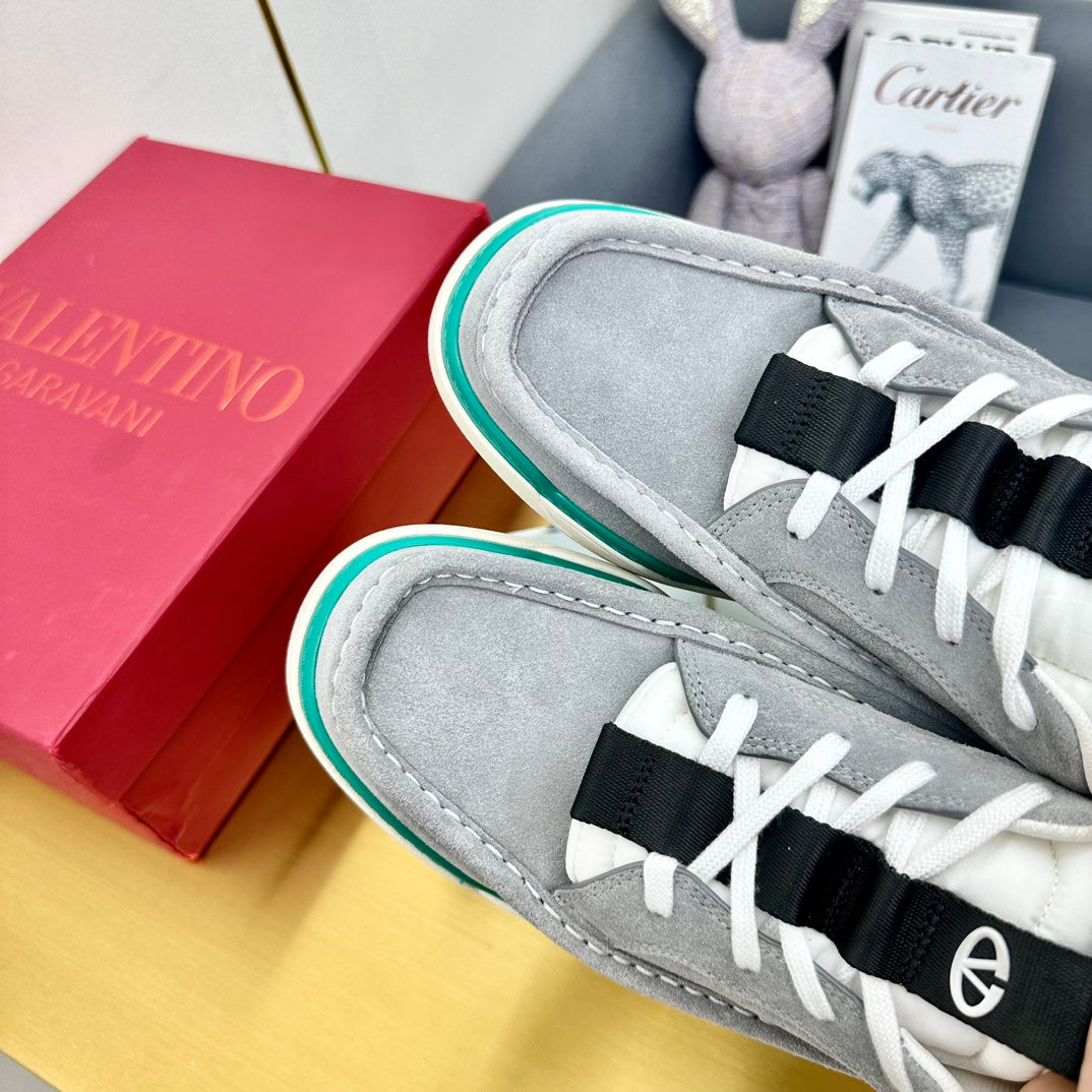 Valentino Netrunner In White Mix Light Grey Suede And Mesh Fabric 812479