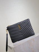 CLUTCH 24 IN BLACK QUILTED CALFSKIN GOLD BUCKLE