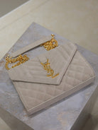 ENVELOPE SMALL CHAIN BAG 22 IN BEIGE SUEDE GOLD HARDWARE