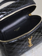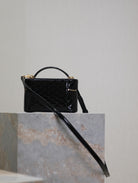 GABY MINI VANITY 18 IN BLACK GLOSSY LAMBSKIN GOLD HARDWARE