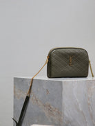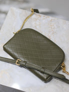 GABY ZIPPED POUCH 19 IN UNIFORM GREEN QUILTED LAMBSKIN GOLD HARDWARE