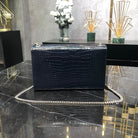 KATE TASSEL 24 IN NAVY BLUE CROCODILE PATTERN CALFSKIN SILVER HARDWARE