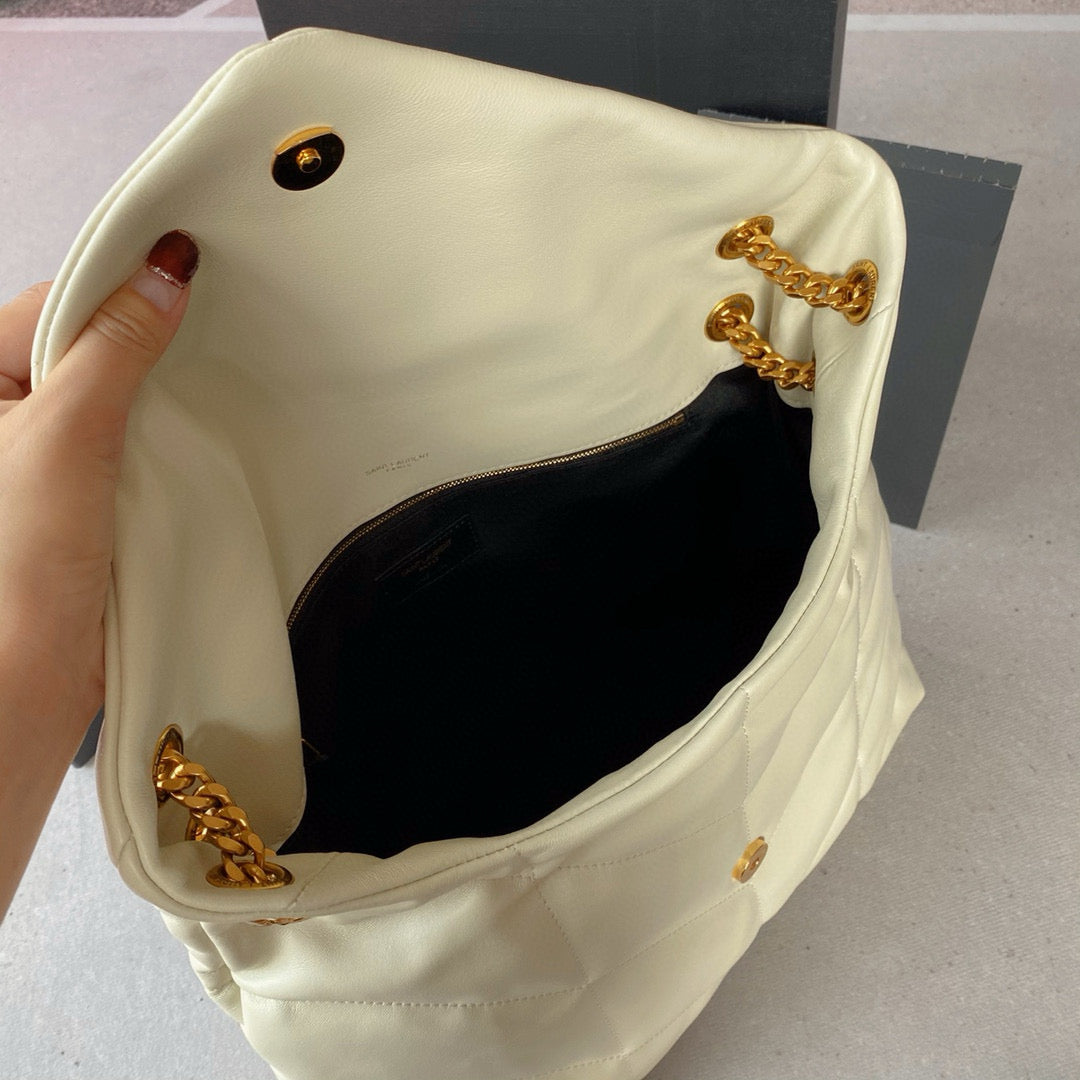 Loulou Puffer 35cm White Quilted Lambskin Bag Ghw