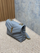 LOULOU SMALL 25 IN ASH BLUE LAMBSKIN GOLD HARDWARE