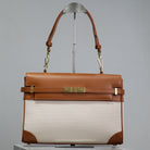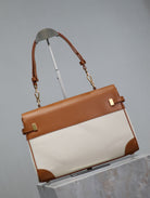 MANHATTAN HANDBAG 32 IN BROWN CALFSKIN AND WHITE CANVAS GOLD HARDWARE