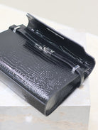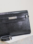 MANHATTAN MEDIUM 29 IN BLACK CROCODILE-EMBOSSED CALFSKIN SILVER BUCKLE