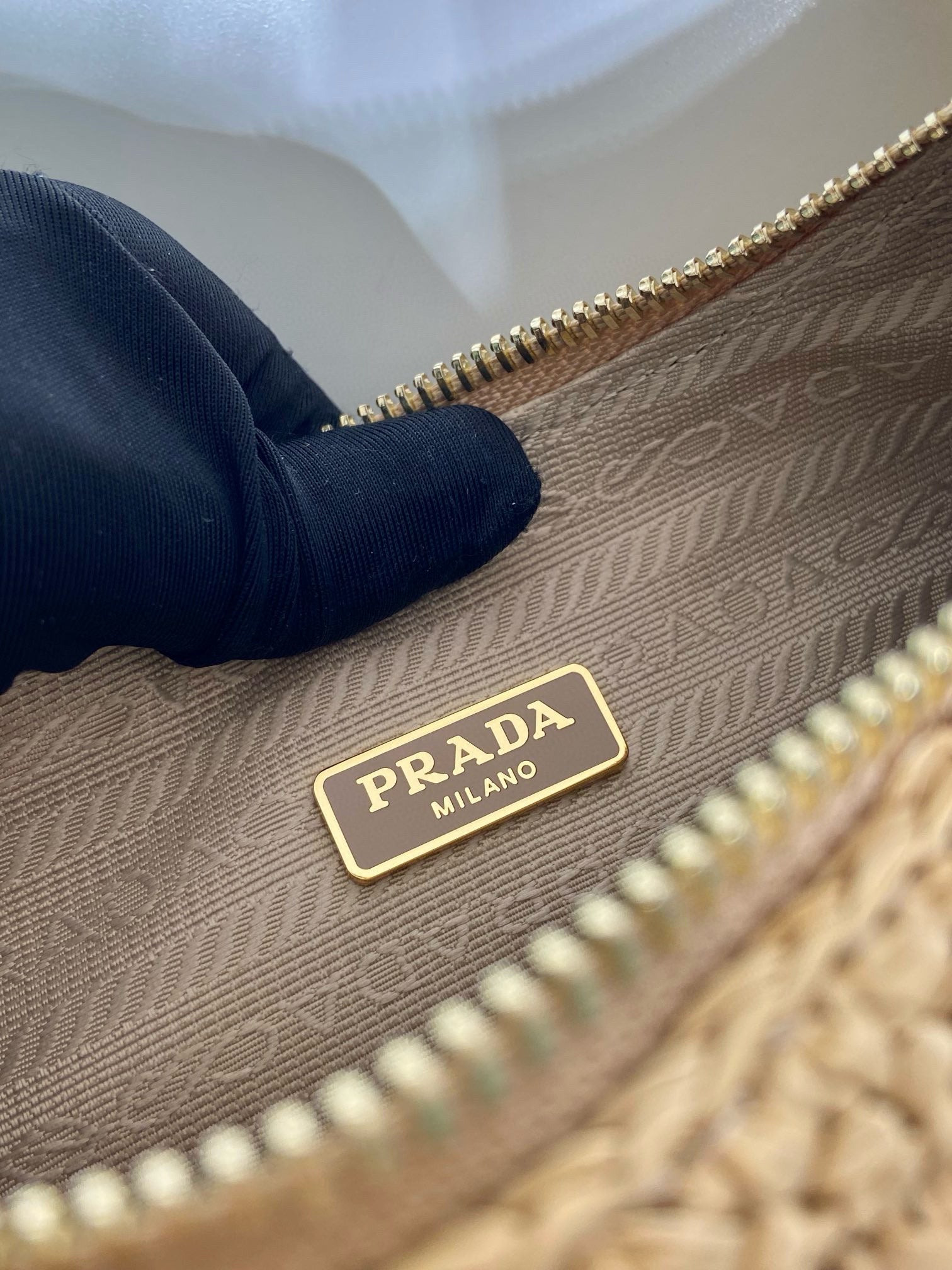 Pra Re-edition crochet mini-bag 22cm beige leather best version