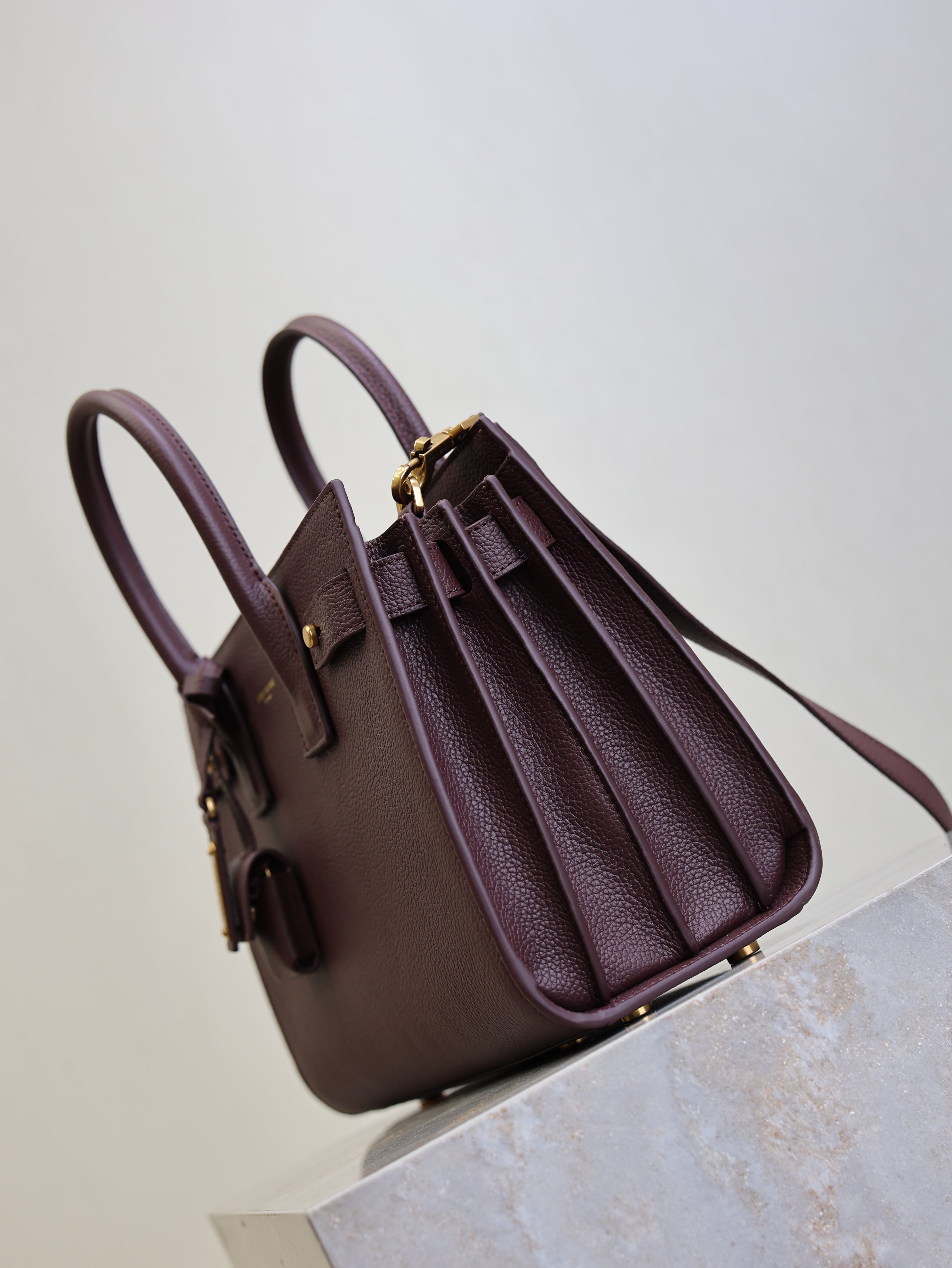 YSL Sac De Jour Nano 26cm Dark Burgundy Grain Cowhide GHW