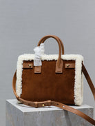 SAC DE JOUR 26 IN BROWN SUEDE AND WHITE SHEARLING TRIM