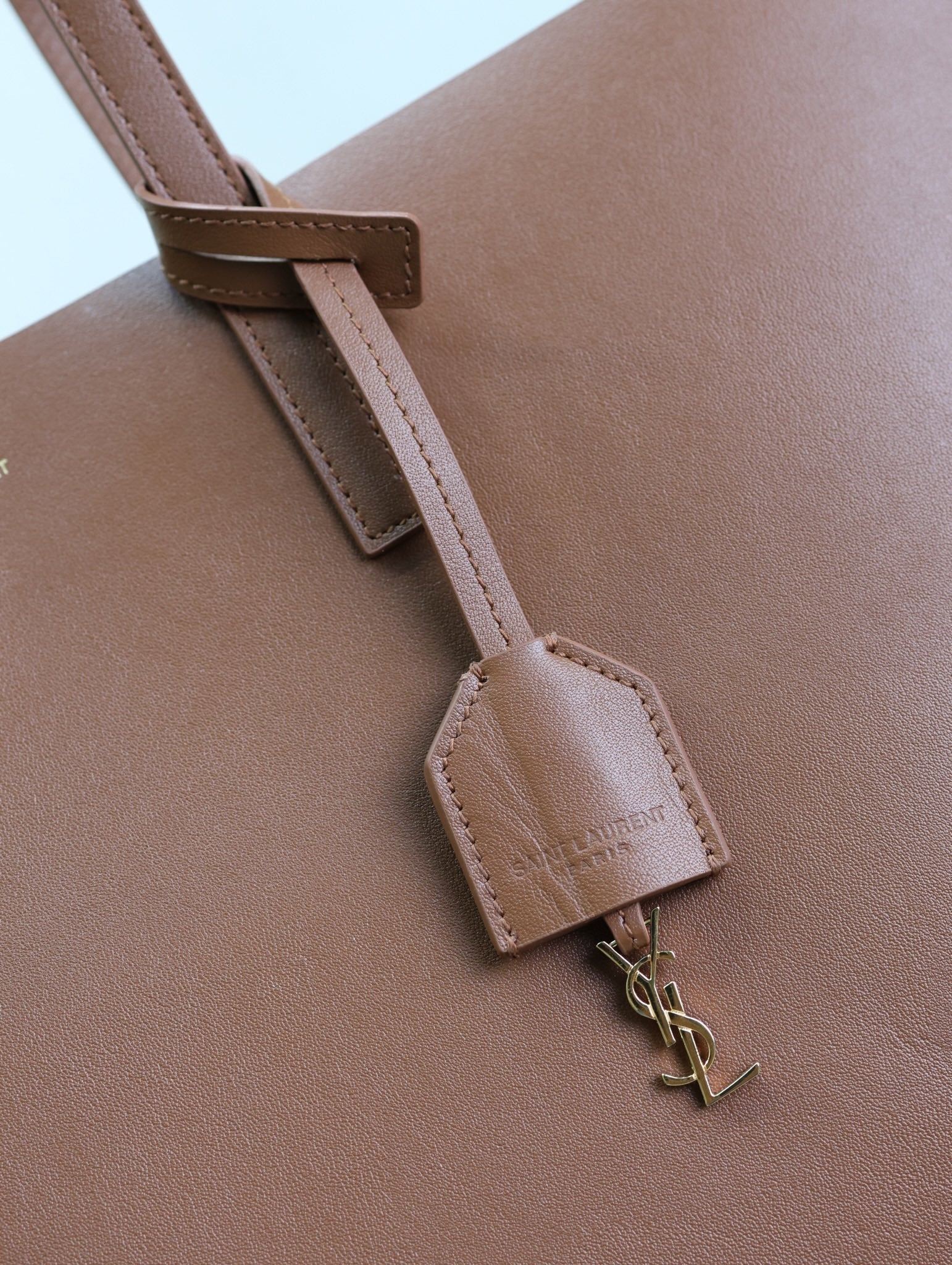 SHOPPING TOTE BAG 38 IN RED BROWN CALFSKIN