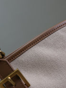 TOTE BAG 47 IN WHITE CANVAS AND BROWN LEATHER TRIM GOLD HARDWARE