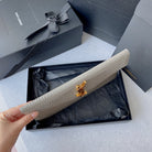 UPTOWN POUCH 27 IN PASTEL GRAY CROCODILE-EMBOSSED SHINY CALFSKIN GOLD LOGO