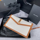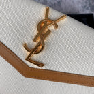 UPTOWN POUCH 27 IN WHITE CANVAS AND BROWN LEATHER TRIM GOLD LOGO