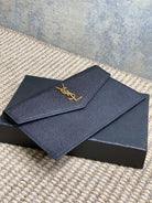 YSL 22s Uptown Pouch Clutch Bag Black Cowhide GHW