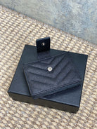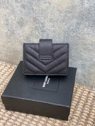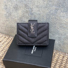 YSL Accordion Card Wallet Black 11cm Caviar Cowhide Sliver HW