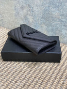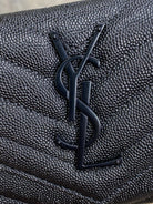 YSL Cassandre Envelope Flap Wallet Full Black Caviar Cowhide