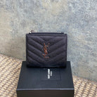 YSL Cassandre Matelassé Bi-Fold Wallet Black Caviar Cowhide Sliver HW