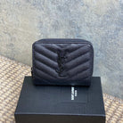 YSL Cassandre Matelassé Compact Zip-Around Wallet Full Black Caviar Cowhide