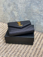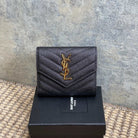 YSL Compact Flap Cassendre Wallet 10cm Black Leather GHW