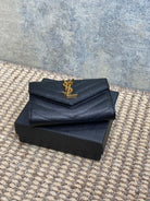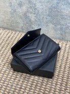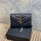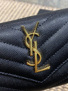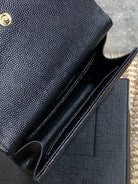 YSL GHW Logo Monogram Card Flap Wallet 13.5cm Black Caviar Cowhide
