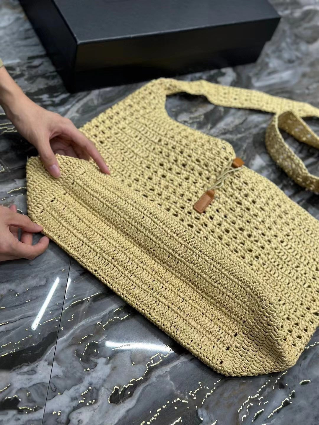 - Material : Raffia, Calfskin