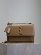 YSL Medium Sunset Shoulder Bag 22cm Brown Cowhide GHW