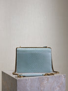 YSL Medium Sunset Shoulder Bag 22cm Grayish Blue Python Pattern Leather