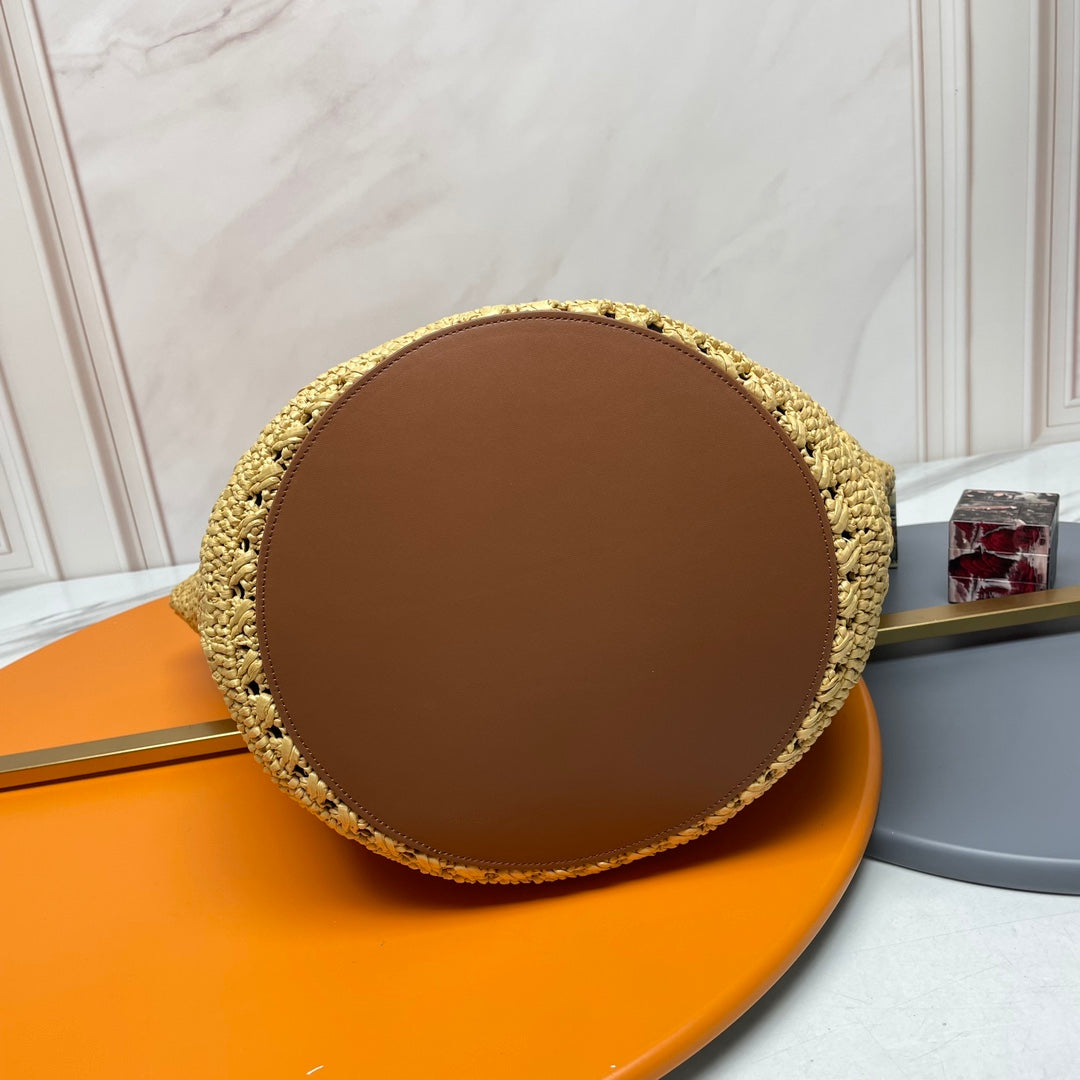 YSL PANIER BAG 55CM BEIGE CROCHET RAFFIA TAN CALFSKIN