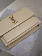 YSL Sunset Handbags 25cm Beige Cowhide