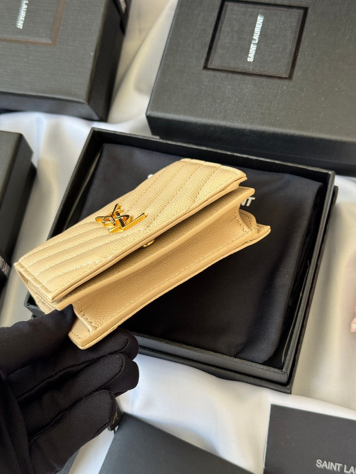 YSL Wallet Light Beige Gold Cowhide 240590