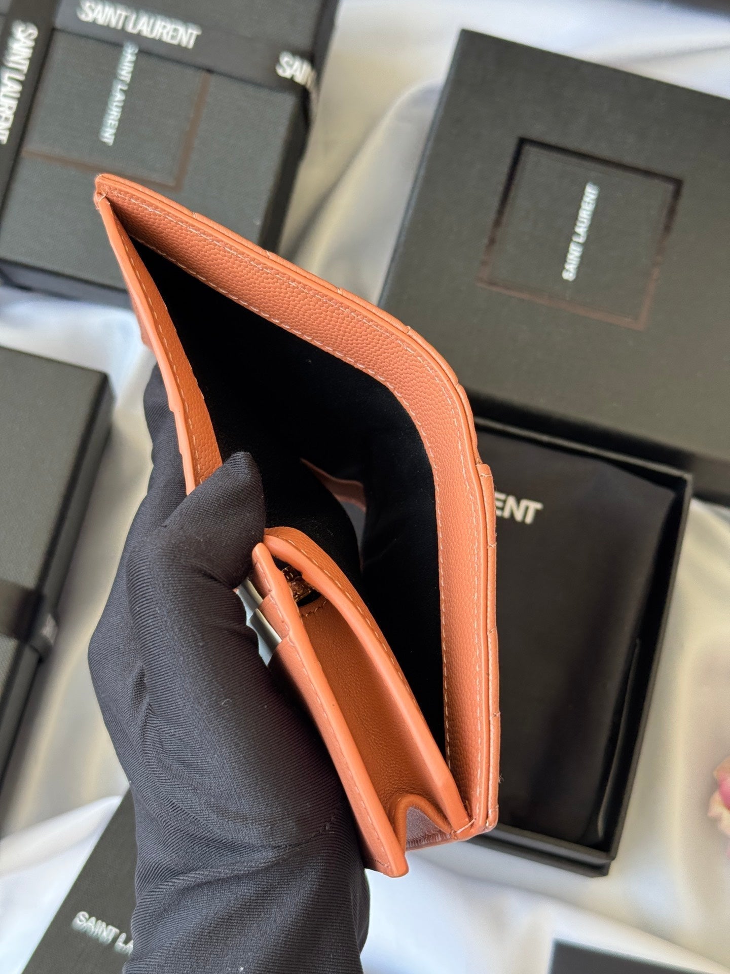 YSL Wallet Light Brown Gold Cowhide 240586