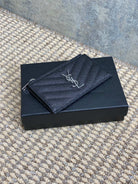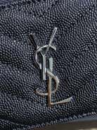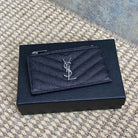 YSL Zip Coin Case With Card Black Caviar Cowhide Sliver HW