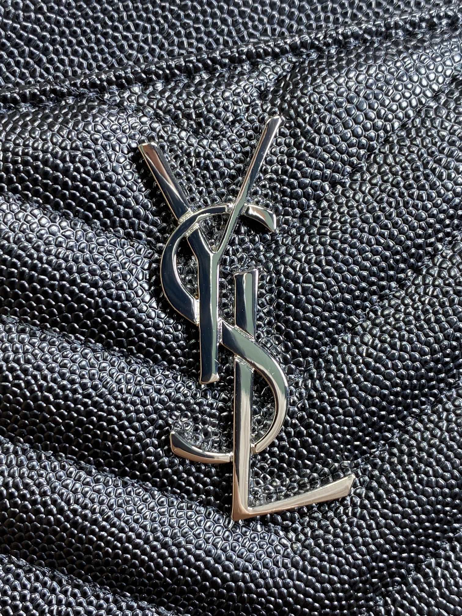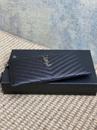 YSL Hardware Logo Zipper Clutch 23cm Black Caviar Cowhide
