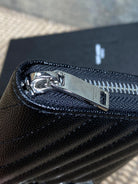 YSL Zippy Long Wallet Black Caviar Cowhide Sliver HW