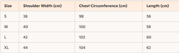 - For more information, please see the size guide below