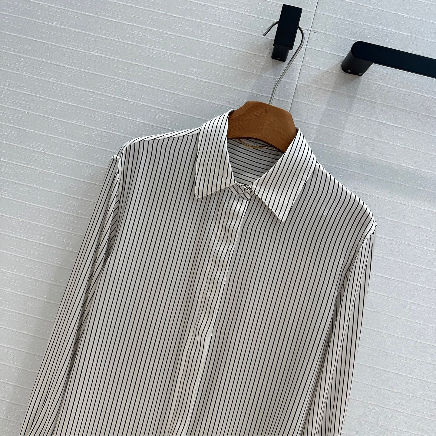 YSL 25 Striped Shirt Black mix White Silk