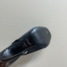 SL BUCKLE STRAP HEELED SANDAL SQUARE BLACK SILK