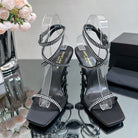 SL OPYUM WHITE CRYSTAL HEELED SANDALS BLACK SATIN