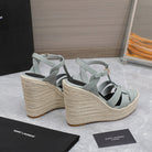 SL TRIBUTE WEDGE SANDALS TEMPERED GREY POLISHED CALFSKIN