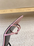 STRAPPY MID HEEL SANDALS IN PINK SILK