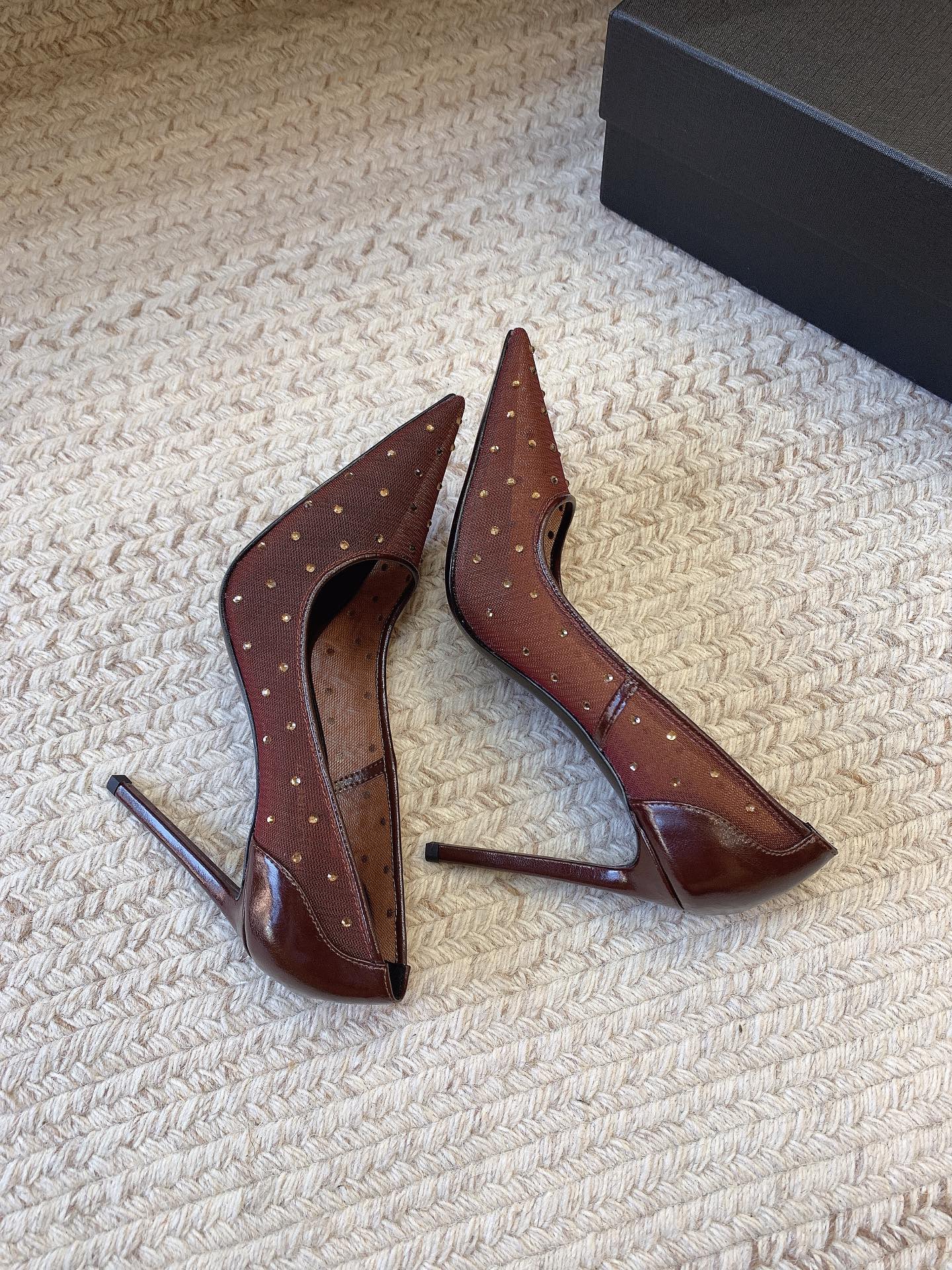 NORMA PUMPS IN CHESTNUT MESH ATTACHED CRYSTALS