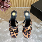 OPYUM 10 CM HIGH MULES IN LEOPARD PRINT SILK