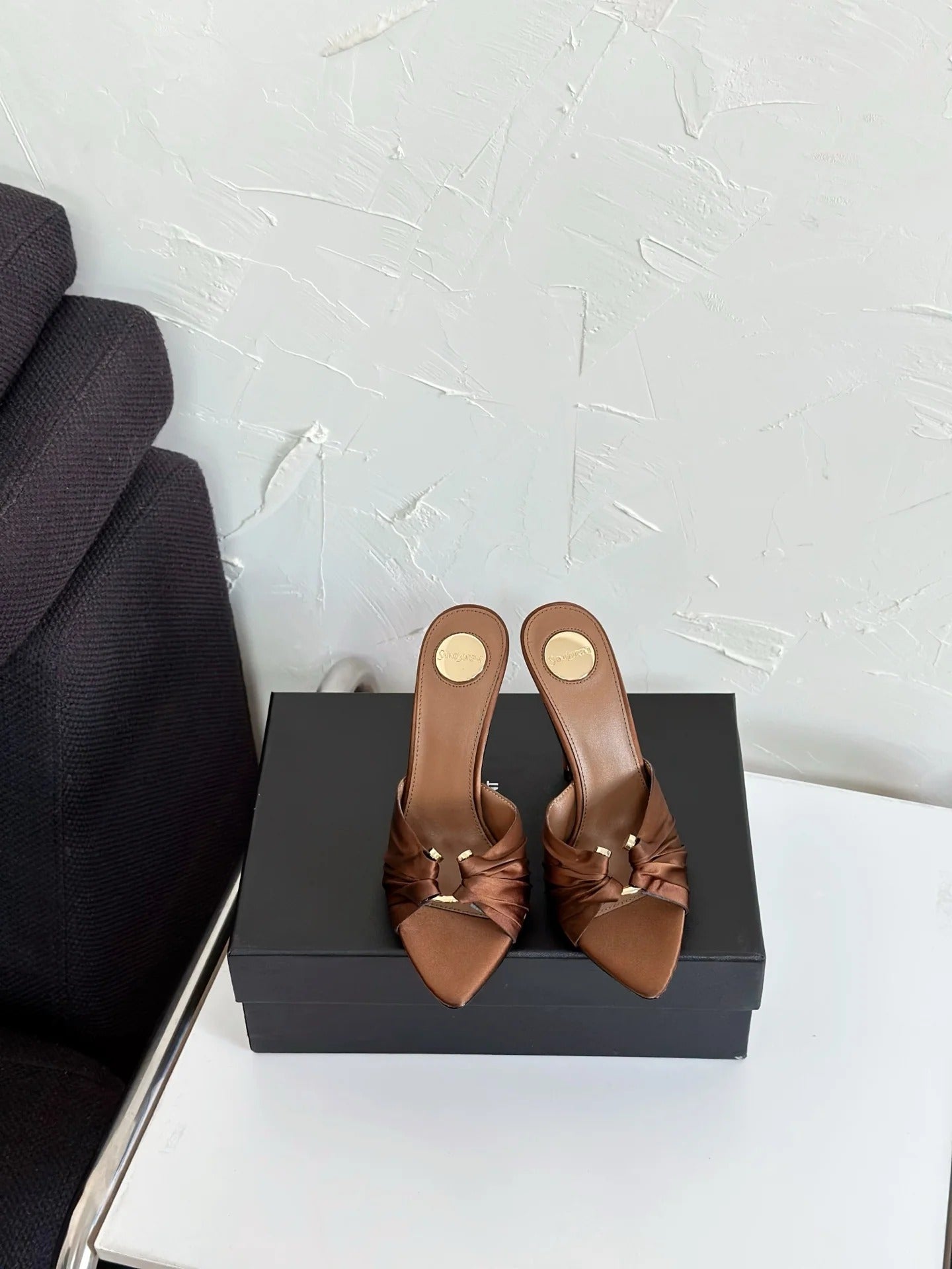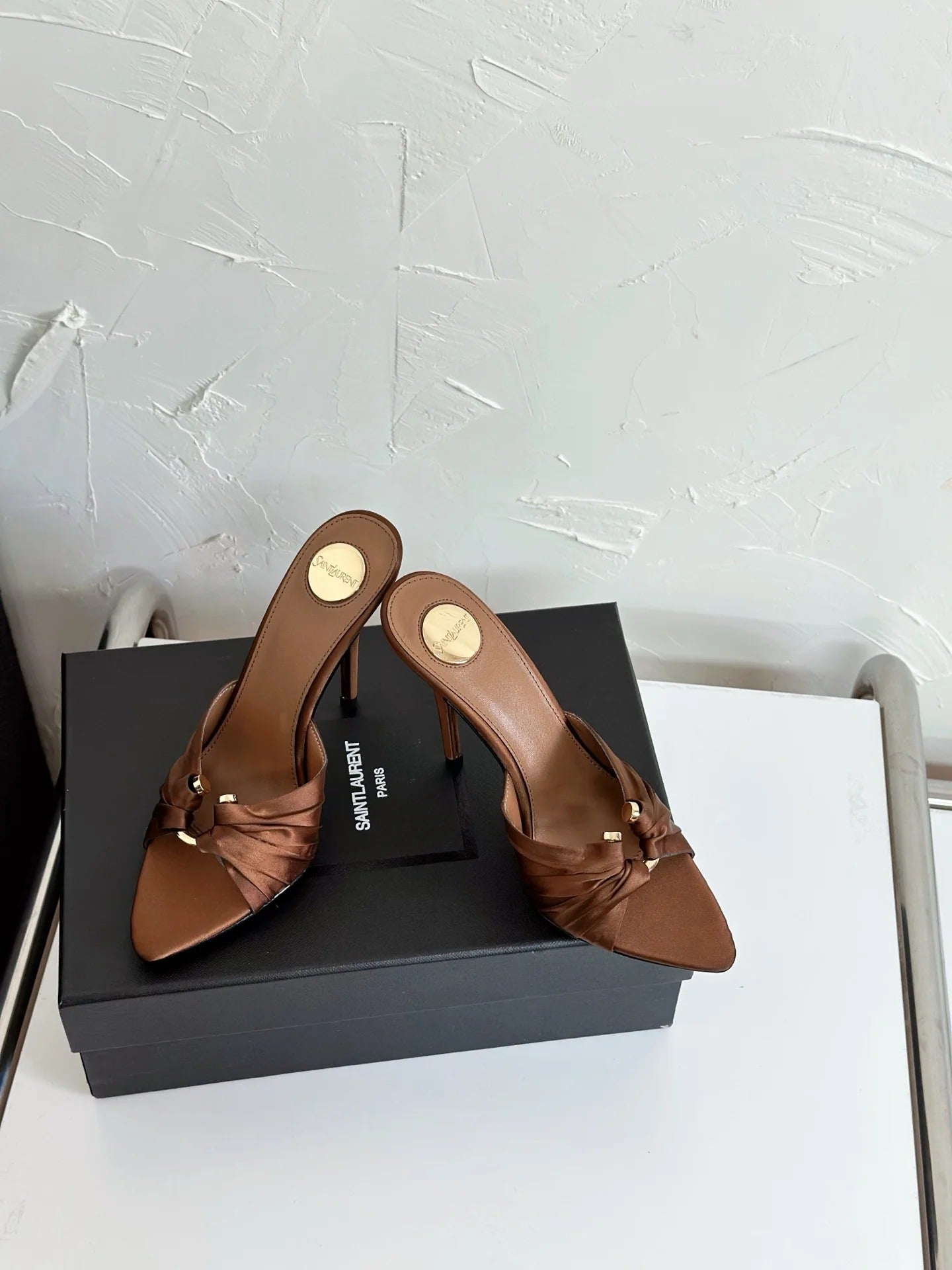 Saint Laurent 2025 Sandal 105mm Brown Silk Sheepskin