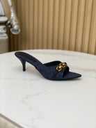 SL CHAIN ATTACH HEELED MULES INDIGO DENIM